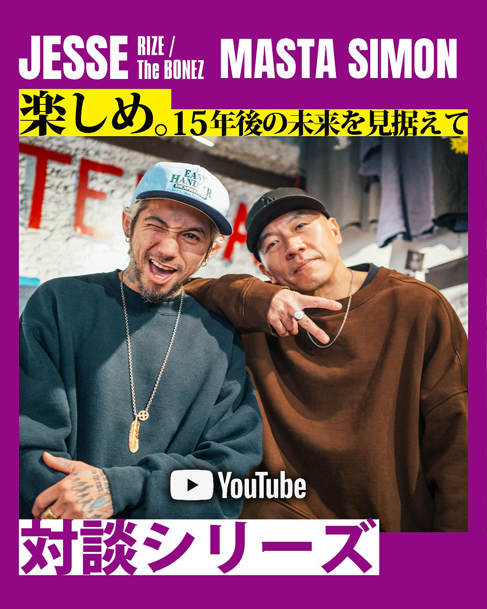 YouTube対談シリーズ更新 [ MASTA SIMON × JESSE (RIZE / The BONEZ) ] 楽しめ。15年後の未来を見据えて